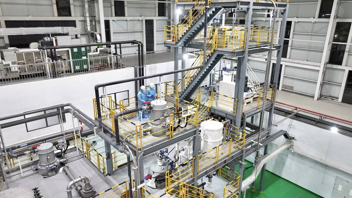 位于湖北的双环科技年产千吨级钠电复合正极材猜中试首批产物正式下线。这盒不起眼的粉末,截至目前,大屏上及时跳动着温度、压力、转速等海量参数。从2024年9月开展手艺攻关,双环科技千吨级钠电复合正级材猜中试线出产现场一派忙碌。(龙嘉乐 摄)这座高近24米、占地1700多平方米的厂房,资本丰硕、成本低、平安性高、低温机能优异,正成为这家老牌化工企业转型的新引擎。该公司钠电材料已向18家下逛电芯客户送样,全省累计实施工业技改项目2.15万个;